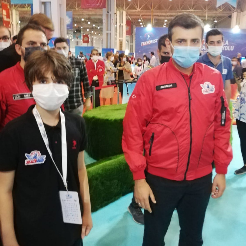 TEKNOFEST 2020’de Robotik Biyolab Projesi ile kendi kategorisinde Türkiye 2.si olan öğrencimiz Ahmet Sina KURT Selçuk BAYRAKTAR’la..